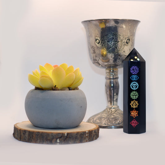 Black Obsidian Chakra Crystal Hexagonal Tower / Obelisk