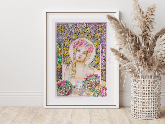 Virgo watercolor wall art prints, Zodiac Star Sign birthday gifts