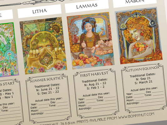 Wiccan Wheel of the Year Calendars & Charts - 8 Pagan Sabbats wall art prints