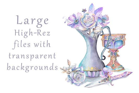 Handpainted watercolor Wiccan clipart bundle - Instant download
